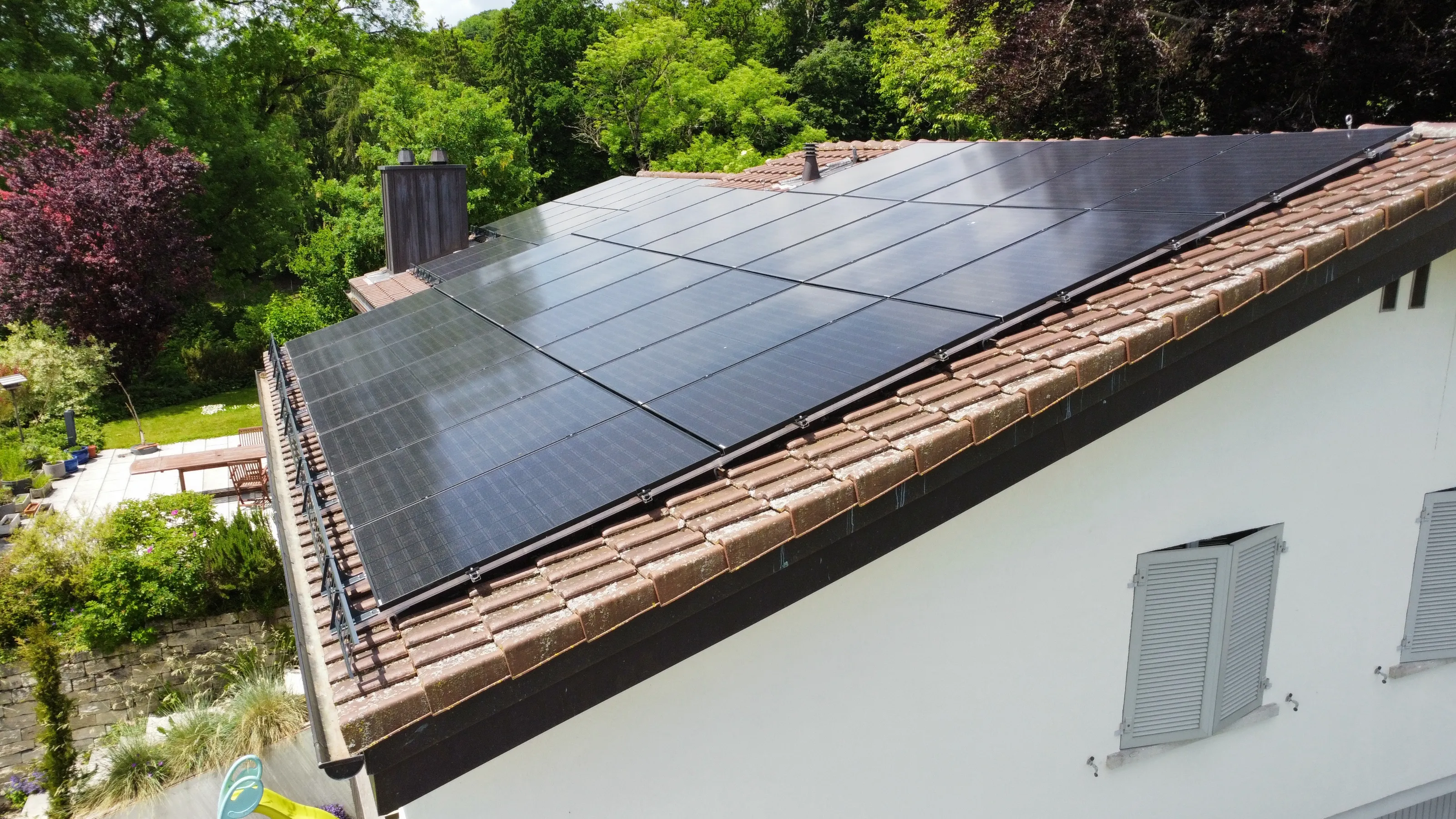 Bevor die Photovoltaikanlageanlage installiert werden konnte, musste zuerst die alte Solarthermieanlage demontiert und das Dach an dieser Stelle neu eingedeckt werden. Zur Erreichung eines maximalen Eigenverbrauchs haben wir einen Solar Manager als Energiemanagementsystem verbaut und durch unsere eigenen Fachspezialisten eingestellt.